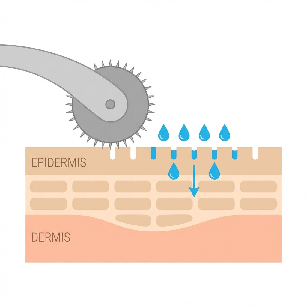 - Roll: Safely create microscopic pathways in the dermis.